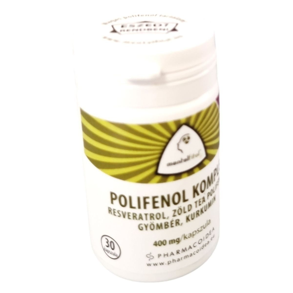 A mentalfitol™ POLIFENOL KOMPLEX egy étrend-kiegészítő, amely 30 kapszulát tartalmaz, mindegyik 400 mg hatóanyagot. A termék fő összetevői a resveratrol, zöld tea polifenol, kurkumin, gyömbér és C-vitamin, amelyek hozzájárulhatnak a fáradtságérzés csökkenéséhez és a sejtek oxidatív stresszel szembeni védekezéséhez. Továbbá, támogathatják az ideg-, az immun- és a keringési rendszer egészséges működését. A terméket a Pharmacoidea Kft. gyártja, és az OÉTI notifikációs száma 15102/2014.