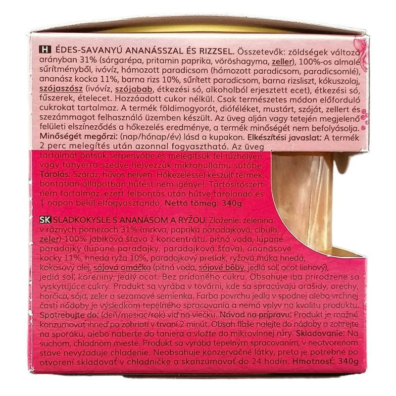 Ez a készétel remekül használható önálló fogásként, de köretként is megállja a helyét különféle húsételek mellett. Az édes-savanyú ananász íze különleges karaktert ad az étkezésekhez, így a család minden tagja élvezheti. Tökéletes választás lehet piknikekhez, munkahelyi ebédekhez vagy akár otthoni étkezésekhez is, hiszen gyorsan és egyszerűen elkészíthető. Az adalékanyag-mentesség miatt pedig biztos lehet benne, hogy csak a legjobb minőségű alapanyagokat fogyasztja.