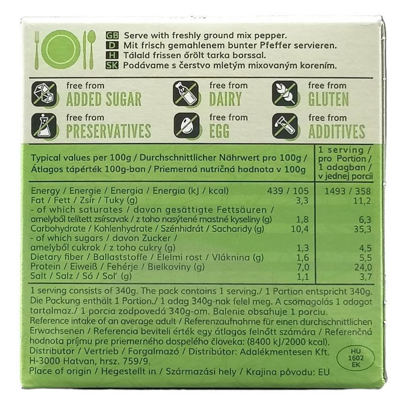 Hozzáadott cukor-, tej-, glutén, tojás, tartósítószer- és adalékanyag-mentes.