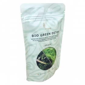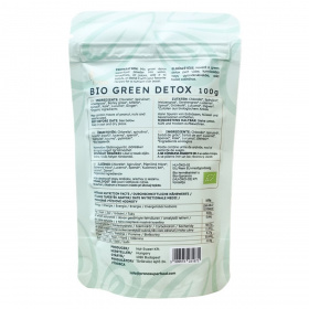 A BIO GREEN DETOX egy 100%-ban természetes összetevőkből álló bio superfood keverék, amelynek fő alkotórészei között chlorella, spirulina, búzafű, árpafű, lucerna, spenót, fodros kel, lucuma és gyömbér szerepelnek. A termék előkészítése egyszerű: a port vízbe, turmixba vagy gyümölcslébe keverve, illetve salátákhoz vagy más receptekhez adva tápanyagdús hatást érhetünk el. A termék nyomokban tartalmazhat földimogyorót, dióféléket és szezámmagot, ezért allergén érzékenyeknek figyelmesnek kell lenniük. A por gluténmentes, így különböző étrendi igényekhez is alkalmazkodik. A BIO GREEN DETOX a Bio-Garancia tanúsítványával jelzett bio termék, amely Magyarországon készült. Javasolt száraz és hűvös helyen tartani a minőség megőrzése érdekében.