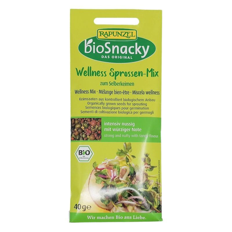A bio wellness csíramagkeverék tápláló, rostban gazdag snack, amely hozzájárul az egészséges életmódhoz.