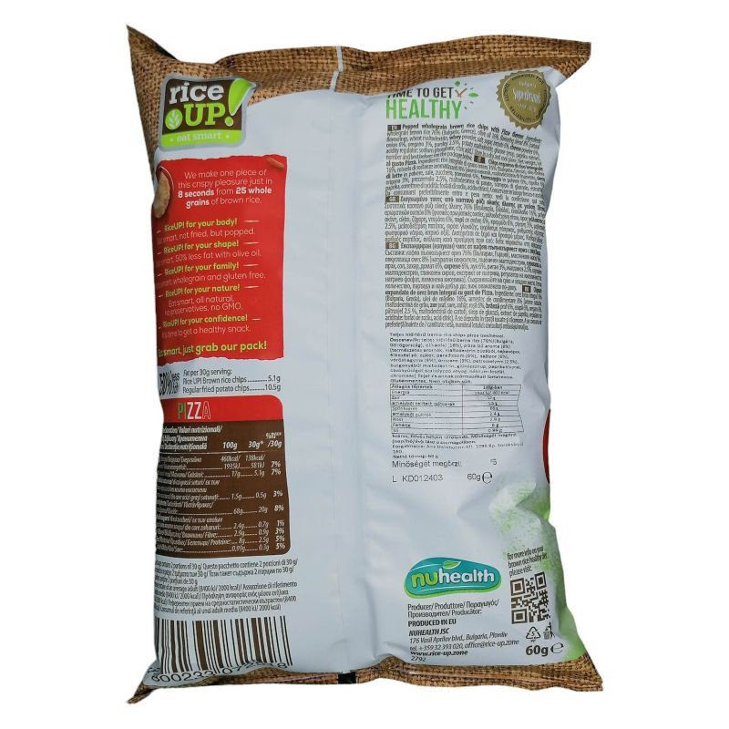 RICE UP gluténmentes pizza ízű barna rizs chips.