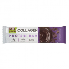 A Rice Up Fehérjeszelet Kollagén-Csoki egy kiváló fehérjeforrás, mely a kollagén jótékony hatásait is magában foglalja. A csokoládé ízű szelet tökéletes választás azok számára, akik aktívan sportolnak, és szeretnék támogatni a bőr és ízületek egészségét. Egy szelet 6gr kollagént tartalmaz. 30% proteintartalommal.