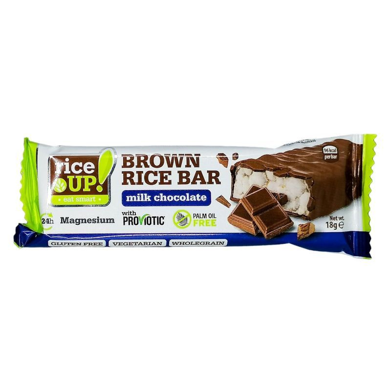Rice Up puffasztott barna rizsszelet tejcsokoládé bevonattal.