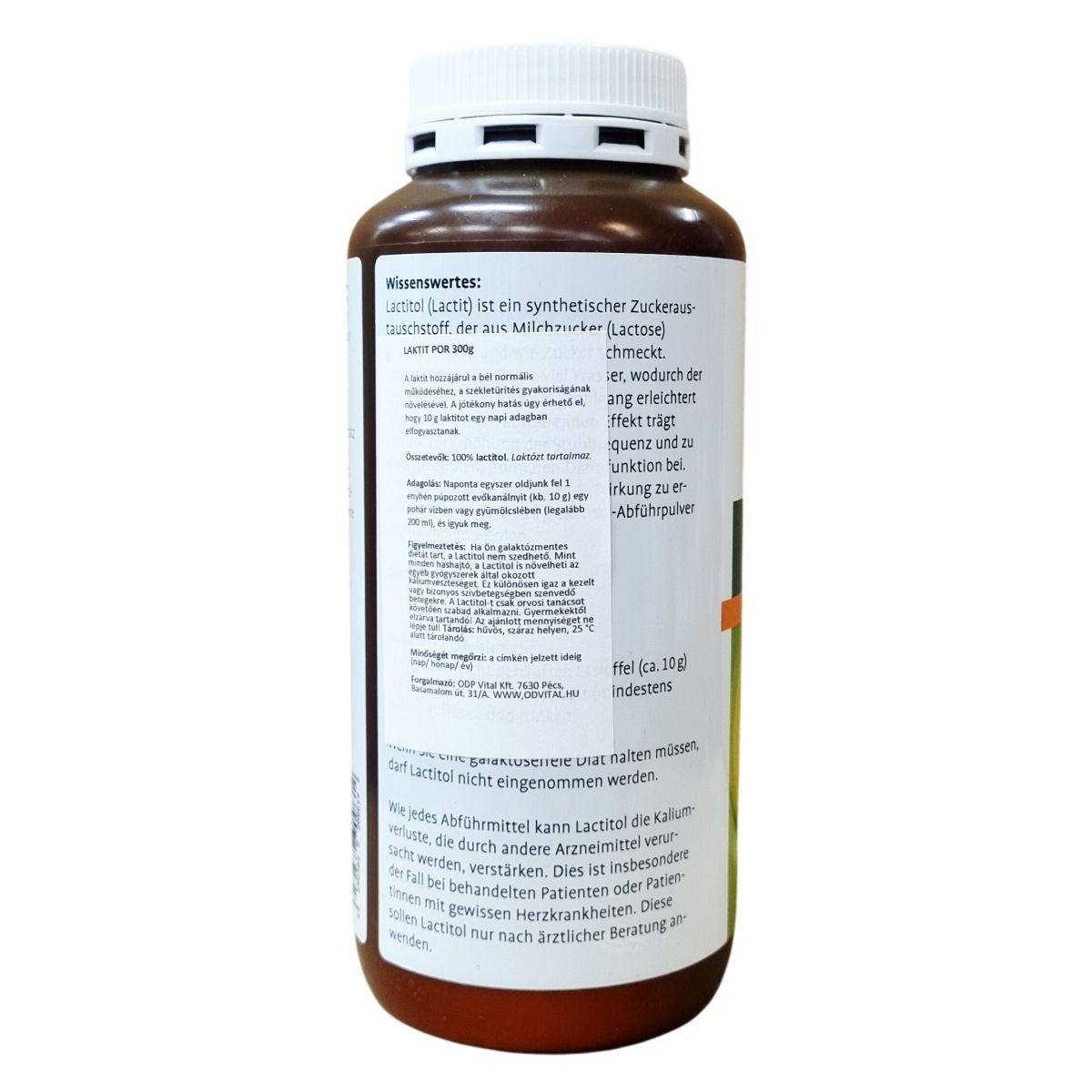 A Lactitol (laktit) egy szintetikus cukorhelyettesítő, amely tejcukorból (laktózból) készül. A termék egy adagja 10 g lactit tartalmaz, amely hozzájárulhat a bél normális működéséhez azzal, hogy növeli a székletürítés gyakoriságát. A termék 300 g-os kiszerelésben kapható, ami 30 adag 10 g-os porformát jelent. A készítményt naponta egyszer, vízben vagy gyümölcslében feloldva kell fogyasztani. A készítményt nem szabad galaktózmentes diétát tartóknak adni. A Lactitol alkalmazása orvosi javaslat nélkül nem ajánlott, mivel hashajtó hatásánál fogva befolyásolhatja a szervezet káliumszintjét, különösen bizonyos szívbetegek esetében. A termék nem helyettesíti az egészséges és változatos étrendet, s nem pótolja az egészséges életmódot. A tárolást szobahőmérsékleten, fénytől védve kell végezni. A por technikailag meghatározott feltöltési magasságú csomagolásban érkezik.