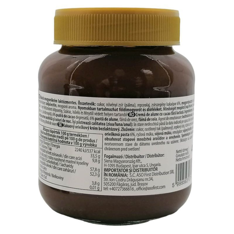 Ez a laktózmentes kakaós mogyorókrém tökéletes választás azok számára, akik ízletes és allergénmentes alternatívát keresnek. Gazdag ízével és krémes állagával ideális reggelikhez vagy édességekhez, ráadásul glutén- és tojásmentes is.