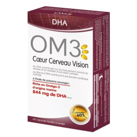 Tengeri eredetű, Omega-3-ban gazdag étrend-kiegészítő. Az Omega-3-ról köztudott, hogy nélkülözhetetlen, mert a szervezet nem tudja előállítani. Az OM3 kapszula 80% koncentrált Omega-3 halolajat tartalmaz. A bevétel megkönnyítése érdekében a kapszulák kis méretűek és könnyen lenyelhetőek. A dokozahexaénsav (DHA) hozzájárul az agy normális működéséhez és a normál látás fenntartásához (a kedvező hatás napi 250 mg DHA fogyasztásával érhető el). Az eikozapentaénsav (EPA) és a dokozahexaénsav (DHA) hozzájárul a normál szívműködéshez (a kedvező hatás napi 250mg DHA és EPA fogyasztásával érhető el). OMEGA-3 DHA: 844mg a sejtmembránok nélkülözhetetlen összetevője.Adagolás: 3-4 kapszula naponta, lehetőleg étkezés elején és lefekvéskor.
