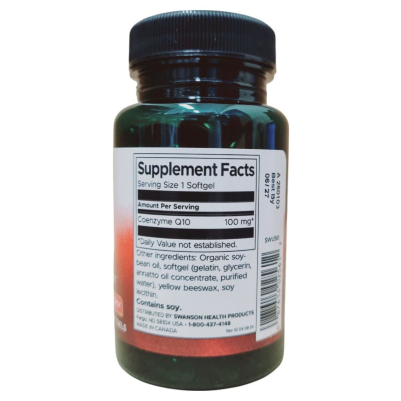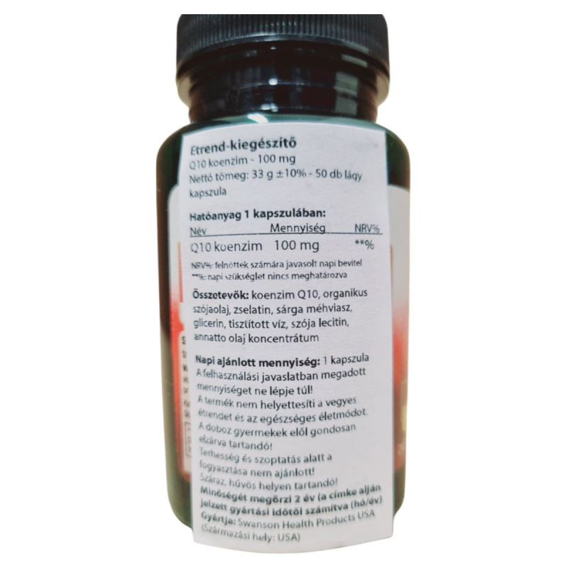 A Swanson Q10 koenzim étrend-kiegészítő 50 db lágy kapszulát tartalmaz, melyek mindegyike 100 mg Q10 koenzimet biztosít. Az organikus szójaolajjal készült termék hozzájárulhat a sejtek energiatermeléséhez. A kapszulák szóját tartalmaznak, ezért allergiások számára nem ajánlott. A termék használata során fontos betartani az ajánlott napi mennyiséget, és kerülni a túladagolást. A termék nem helyettesíti a kiegyensúlyozott étrendet és az egészséges életmódot. Gyermekek elől elzárva tartandó, és terhesség vagy szoptatás alatt nem ajánlott a fogyasztása. A Swanson Health Products által gyártott termék minőségét 2 évig megőrzi a gyártási időtől számítva.