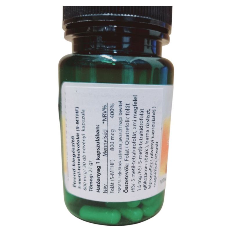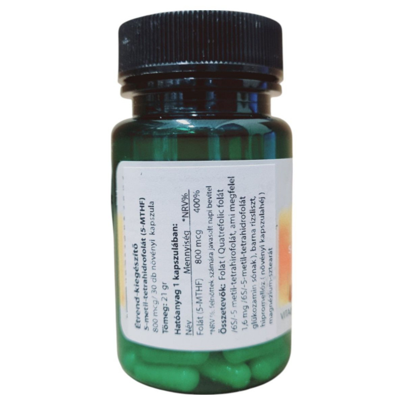 A 5-metil-tetrahidrofolát kapszula 800 mcg folátot tartalmaz, amely hozzájárulhat a normál vérképzéshez és az immunrendszer megfelelő működéséhez. Növényi kapszulahéjjal készült.