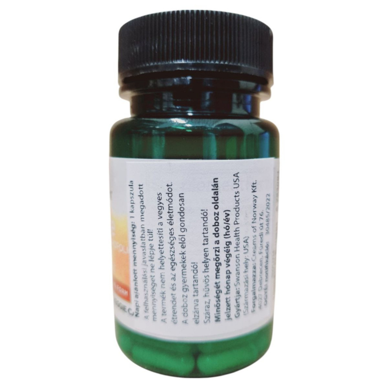 A Swanson 5-metil-tetrahidrofolát kapszula 800 mcg folátot tartalmaz, amely hozzájárulhat a normál vérképzéshez és az immunrendszer megfelelő működéséhez. A termék növényi kapszulahéjjal készült, így vegetáriánusok számára is alkalmas lehet. A folát Quatrefolic formában van jelen, amely a szervezet számára könnyebben hasznosítható. A termék barna rizslisztet és magnézium-sztearátot is tartalmaz. Fontos, hogy a napi ajánlott mennyiséget ne lépje túl, és a terméket gyermekek elől elzárva tartsa. A kapszulákat száraz, hűvös helyen kell tárolni. A terméket az USA-ban gyártják, és a Ceres s of Norway Kft. forgalmazza Magyarországon.