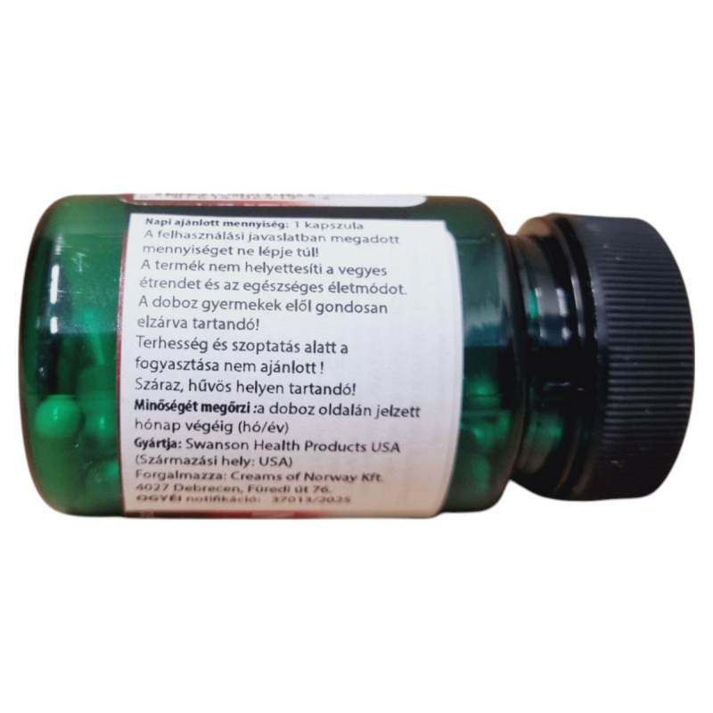 A SWANSON Nattokináz egy speciális étrend-kiegészítő, amely 30 kapszulát tartalmaz, mindegyik 100 mg nattokinázt (2000 FU) biztosít. A termék célja, hogy támogassa a szervezet egészséges működését. Az összetevők között megtalálható a maltodextrin, zselatin, mikrokristályos cellulóz és magnézium-sztearát. A termék használata során fontos betartani az ajánlott napi mennyiséget, és figyelembe venni a figyelmeztetéseket, különösen terhesség és szoptatás alatt. A terméket száraz, hűvös helyen kell tárolni, és gyermekek elől elzárva tartani. A gyártó Swanson Health Products USA, a forgalmazó pedig a Creams of Norway Kft.