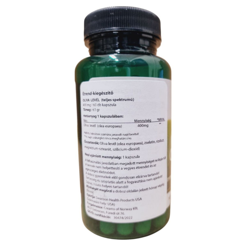 Az Oliva Levél étrend-kiegészítő kapszula 400 mg oliva levél kivonatot tartalmaz, amely természetes módon támogathatja az egészséges életmódot. A termék összetevői között megtalálható a zselatin, rizsliszt, magnézium-sztearát és szilícium-dioxid. A napi ajánlott mennyiség 1 kapszula, amelyet nem szabad túllépni. Fontos, hogy a terméket gyermekek elől elzárva tartsuk, és terhesség vagy szoptatás alatt a fogyasztása nem ajánlott. A termék minőségét száraz, hűvös helyen történő tárolással őrizhetjük meg. A gyártó Swanson Health Products, a forgalmazó pedig a Creams of Norway Kft. Az OGYÉI notifikációs száma 30474/2022.