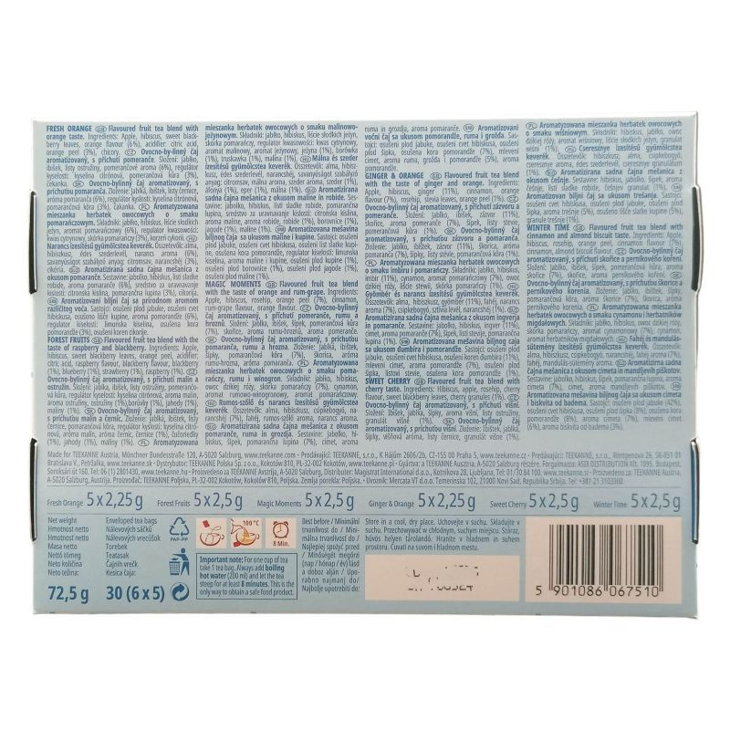 MAGIC MOMENTS: Alma, hibiszkusz, csipkebogyó, narancshéj (9%), rum és szőlő aroma, narancs aroma.