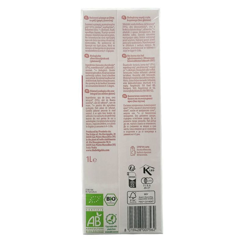 Tápanyag tartalom: Energia 264 kJ, 63 kcal, Zsír 1,3 g, amelyből telített zsírsavak 0,1 g, Szénhidrát 12 g, amelyből cukor 4,8 g, Fehérje <0,5 g , Só 0,08 g. Összetevők: Forrásvíz, olasz barna rizs* (17%), napraforgó olaj*, pórsáfrány olaj*, só. *=ökológiai. Hozzáadott cukor nélkül. Természetes cukrokat tartalmaz.