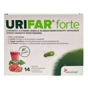D-mannózt, A-vitamint, rozella és meggyszárkivonatot tartalmazó értend-kiegészítő édesítőszerrel.