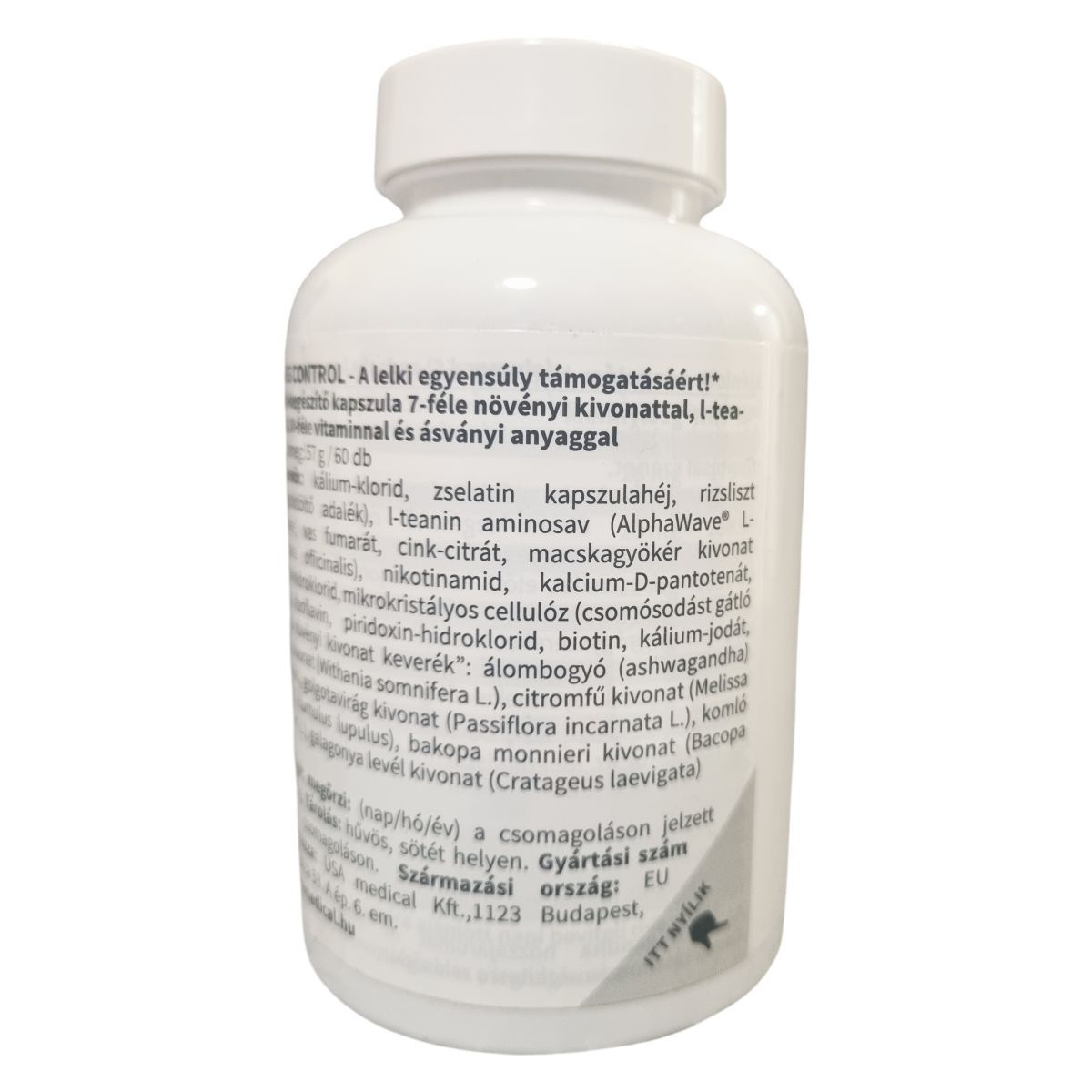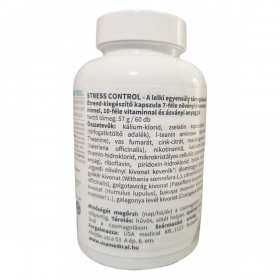 Stress Control – A lelki egyensúly támogatásáért! Étrend-kiegészítő kapszula 7-féle növényi kivonattal, l-teaninnel, 10-féle vitaminnal és ásványi anyaggal. Nettó tömeg: 57 g / 60 db.