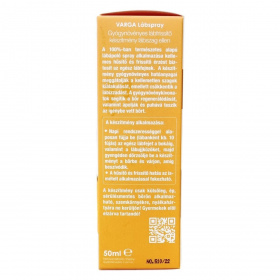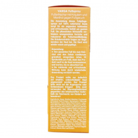 A VARGA SPORT lábspray egy 100%-ban természetes alapú termék, amely kellemesen hűsíti és frissíti a lábat, miközben a gyógynövények komplex hatásával gátolja a kellemetlen lábszag kialakulását és mérsékli a lábizzadást. A gondosan összeválogatott gyógynövénykivonatoknak köszönhetően támogatja a bőr regenerációját, puhává és ápolttá teszi az igénybevett bőrt. Rendkívül egyszerű a használata: a teljes lábfejet, beleértve a bokát és a lábujjközöket is, alaposan be kell fújni, majd finoman bemasszírozni a bőrbe. Az ismételt alkalmazás tovább fokozza a kellemes hűsítő és frissítő érzést. Ez a lábspray ideális mindennapos lábápolásra, különösen azok számára, akik szeretnék megelőzni a lábszag kialakulását és frissen tartani lábukat természetes módon.