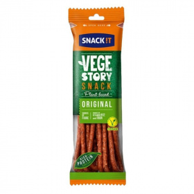 Szójabab alapú, füstölt, gőzölt, szárított vegán snack kolbász. Kizárólag növényi alapanyagokból készült közvetlen fogyasztásra alkalmas élelmiszer.