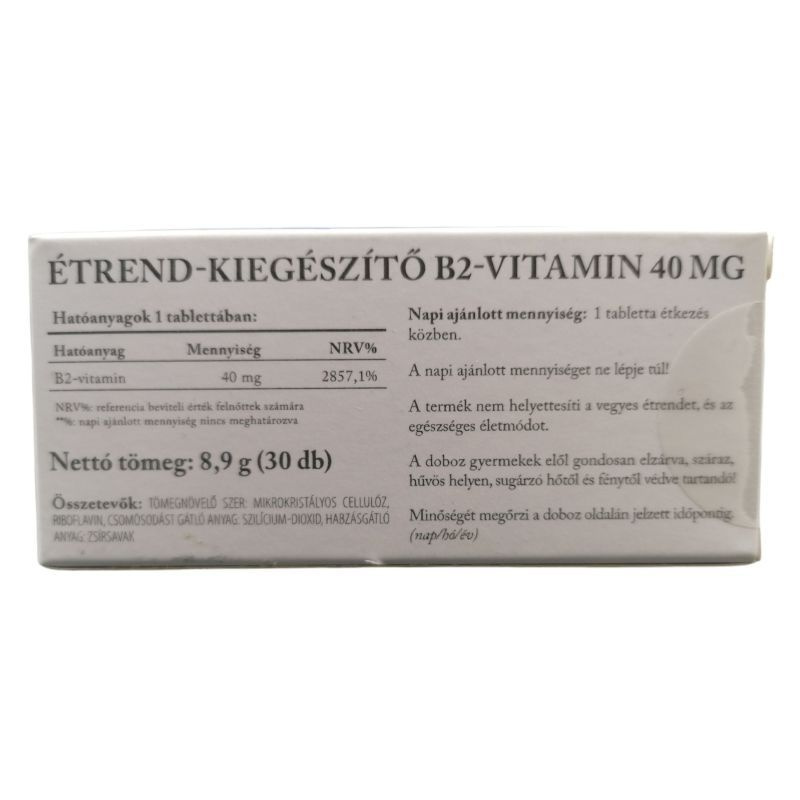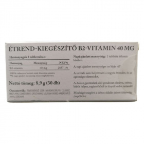 Hatóanyag 1 tablettában: B2 vitamin 40 mg