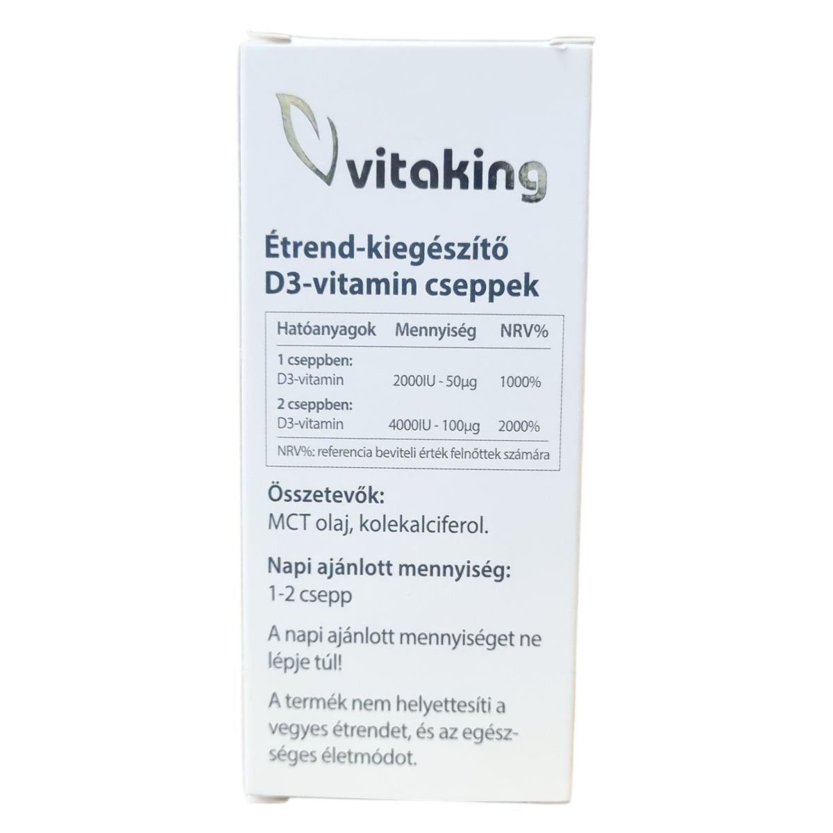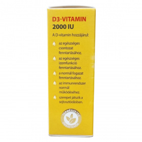 1 cseppben: D3-vitamin 2000 IU - 50 µg (1000% NRV)