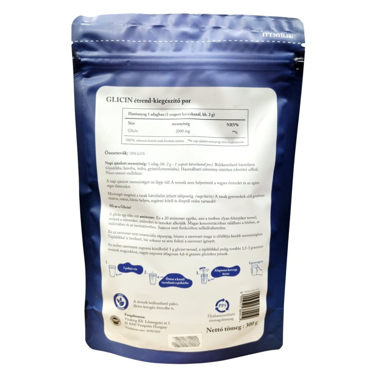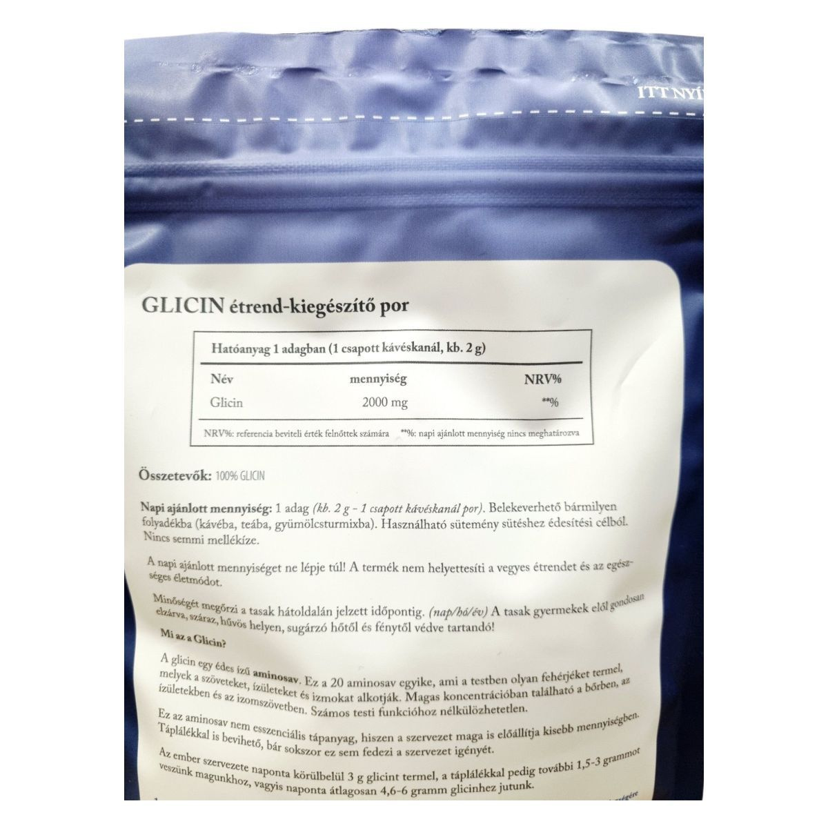 A glicin az egyik legkisebb és legegyszerűbb aminosav, amely kulcsszerepet játszik a szervezet fehérjeépítő folyamataiban. Segíthet a sejtek regenerációjában, a bőr, az ízületek és az izmok egészségének fenntartásában, valamint hozzájárulhat az idegrendszer kiegyensúlyozott működéséhez. Magas tisztaságú, íztelen por formája révén egyszerűen beilleszthető a mindennapi étrendbe. Természetes, vegán összetételének köszönhetően paleo és ketogén életmódot követők számára is ideális választás.