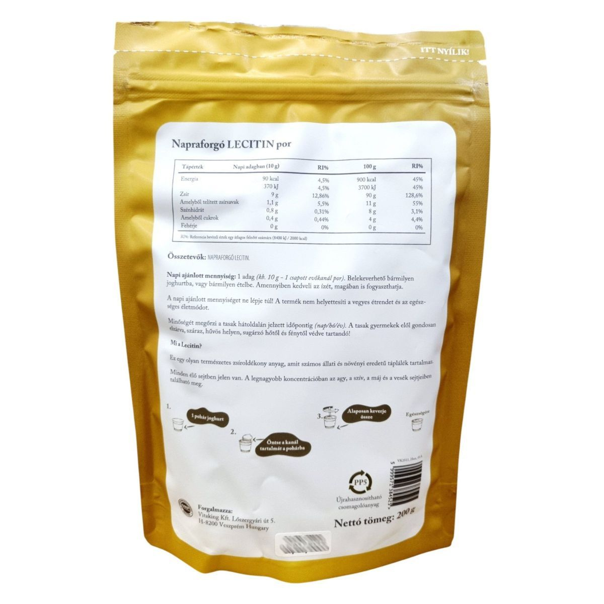 A napraforgó lecitin természetes foszfolipid-forrás, amely hozzájárulhat a sejthártyák egészségéhez és a normál zsíranyagcseréhez. Mivel nem tartalmaz szóját, kiváló alternatíva azok számára, akik szójamentes étrendet követnek. A lecitin a test minden sejtjében jelen van, különösen az agyban, a szívben és a májban. A por formájú változat könnyen beilleszthető vegán, paleo vagy ketogén étrendbe, és konyhai felhasználása is egyszerű – akár turmixba, zabkásába vagy joghurtba keverve is fogyasztható.