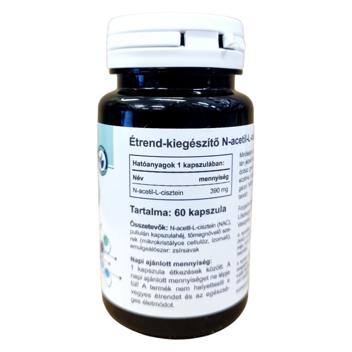 Az N-acetil-L-cisztein (NAC) a cisztein nevű aminosav stabil és jól hasznosuló formája. A szervezet a ciszteint fehérjék építőköveként és több enzim működésében is felhasználja. A kapszulánként 390 mg hatóanyagot tartalmazó készítmény célja, hogy hozzájáruljon a kéntartalmú aminosavak pótlásához a mindennapi étrendben. A növényi kapszulahéj és az adalékanyagoktól mentes összetétel miatt a termék vegánok számára is megfelelő. Praktikus kiszerelésének köszönhetően jól adagolható, és könnyen beilleszthető a mindennapi táplálkozásba.