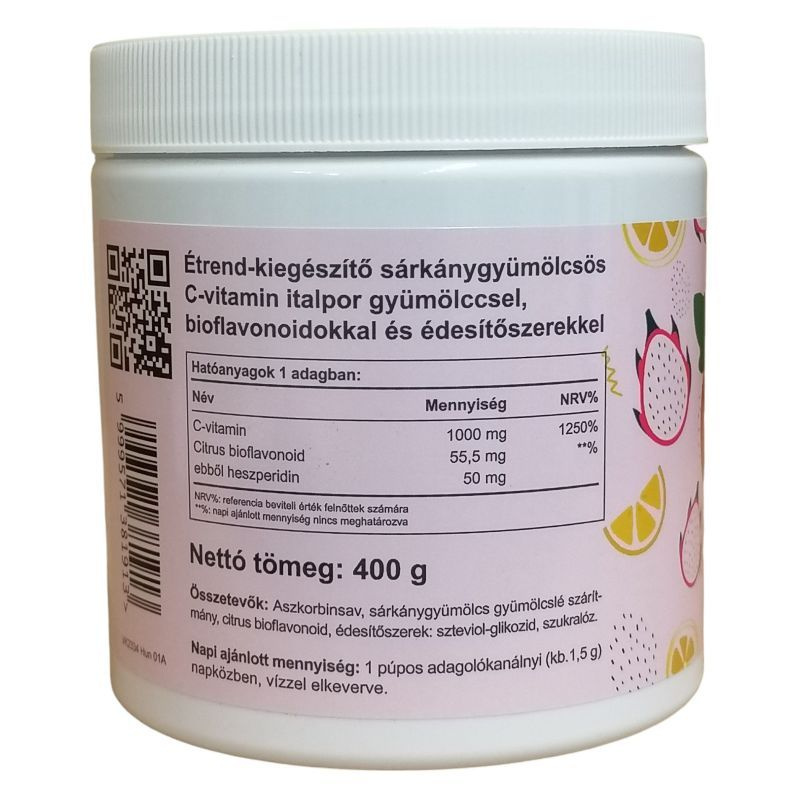 Ez a különleges italpor kiváló, és egyben gazdaságos C-vitamin forrás, ami ráadásul bioflavonoidokat is tartalmaz. A kellemes sárkánygyümölcsös íze miatt könnyen megszerethető, és akár üdítőital helyett is fogyasztható.