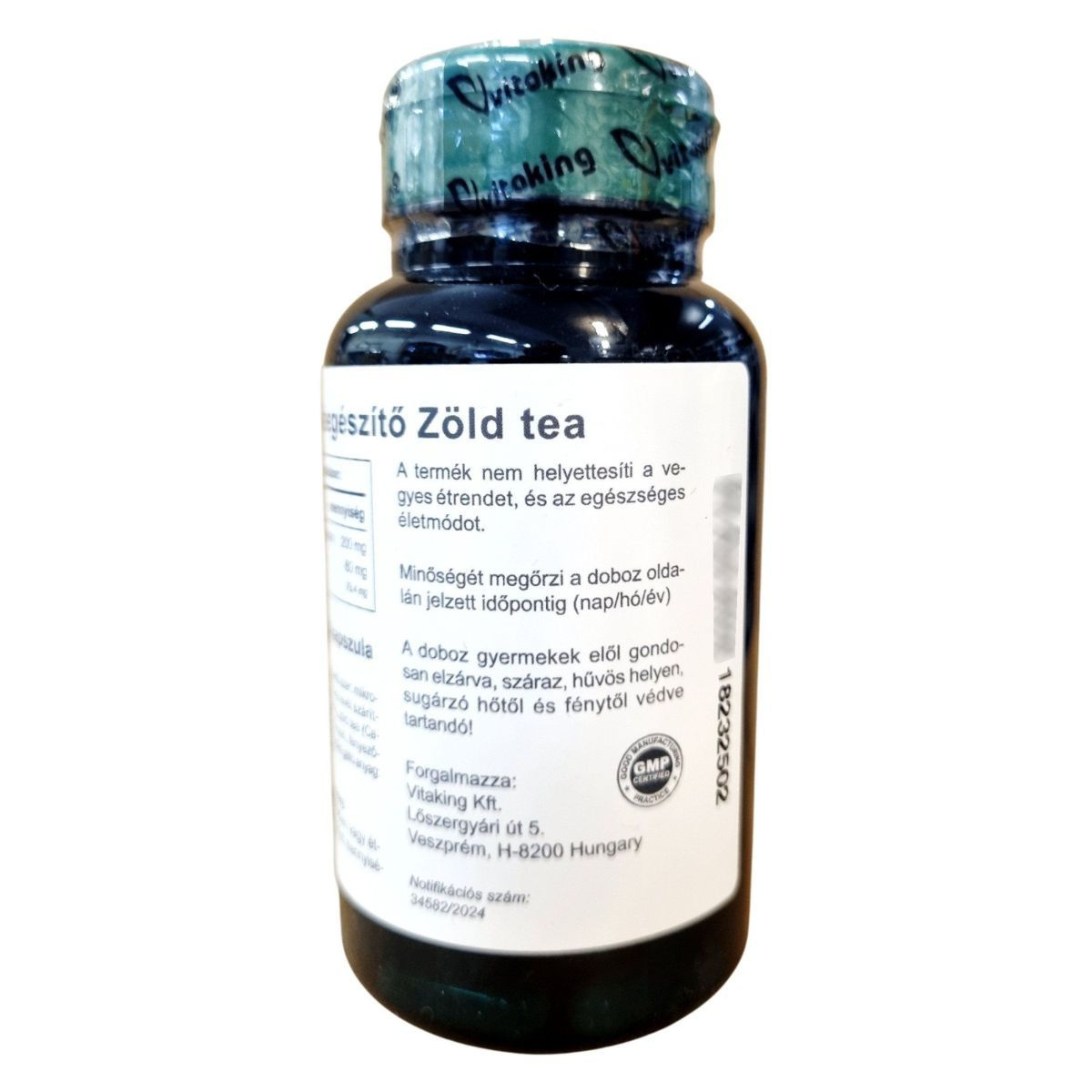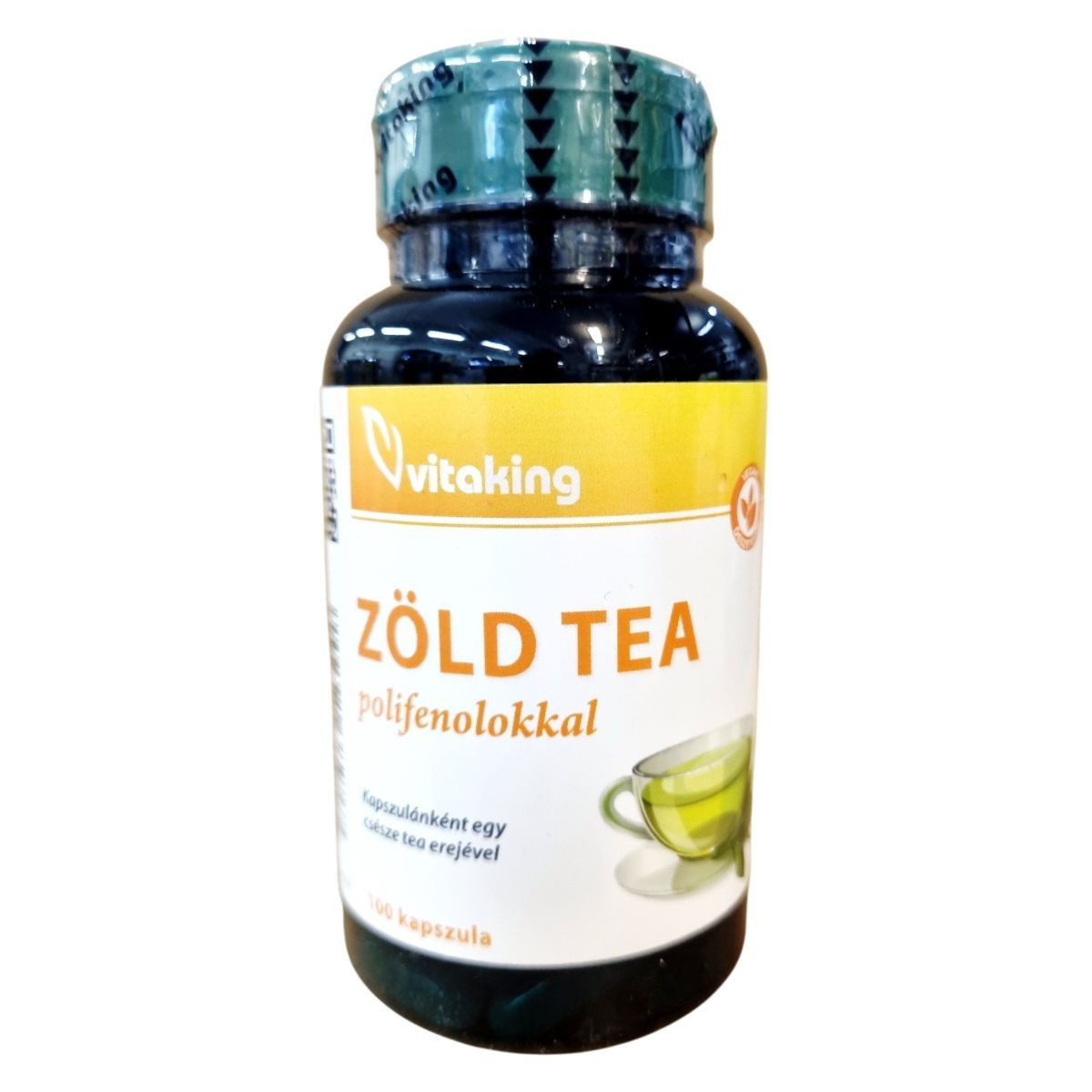 A Vitaking Zöld tea kapszula a Camellia sinensis növény leveléből származó kivonatot és szárítmányt tartalmazza, amely természetes polifenolokban gazdag. A polifenolok antioxidáns hatásukkal hozzájárulhatnak a sejtek oxidatív stresszel szembeni védelméhez. A készítmény kapszulánként egy csésze tea erejét nyújthatja, így kényelmes formában biztosítja a zöld tea előnyeit. A napi adag 2 kapszula, amely étrend-kiegészítőként használható. A termék GMP tanúsítvánnyal készül, és notifikációs számmal rendelkezik, ami garantálja a minőséget és az ellenőrzött gyártást.
