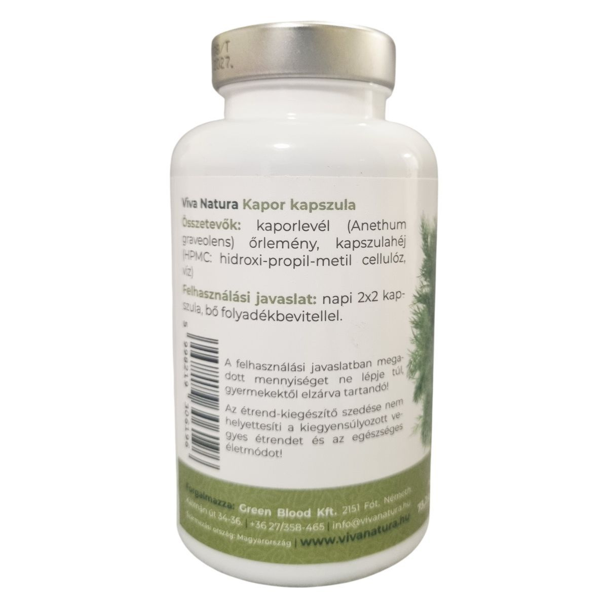 A kapor (Anethum graveolens) évszázadok óta ismert gyógynövény, melyet a népi gyógyászatban és a konyhákban egyaránt használnak. Frissítő íze és aromája mellett segítheti az emésztést, a máj és az epe működését, és hozzájárulhat az emésztési kényelemhez és a jobb zsíremésztéshez. Támogathatja a jobb alvást, a relaxációt és a feszültség csökkentését. A termék nem tartalmaz hozzáadott cukrot és teljes mértékben mentes a GMO-tól és a laktóztól. A kapszula vegetáriánus és vegán étrendbe egyaránt beilleszthető.