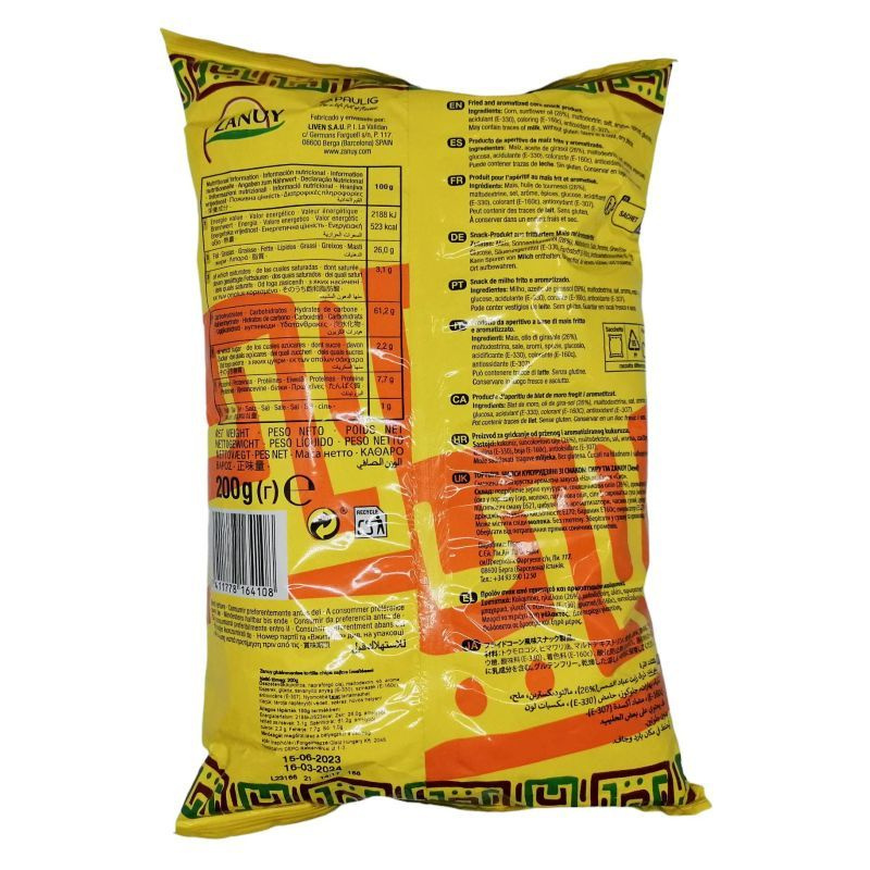 Kukorica, napraforgó olaj, maltodexrin, só, aroma, fűszerek, glükóz, savanyító anyag (E-330), színezék (E-160c), antioxidáns (E-307). Nyomokban tejet tartalmazhat.