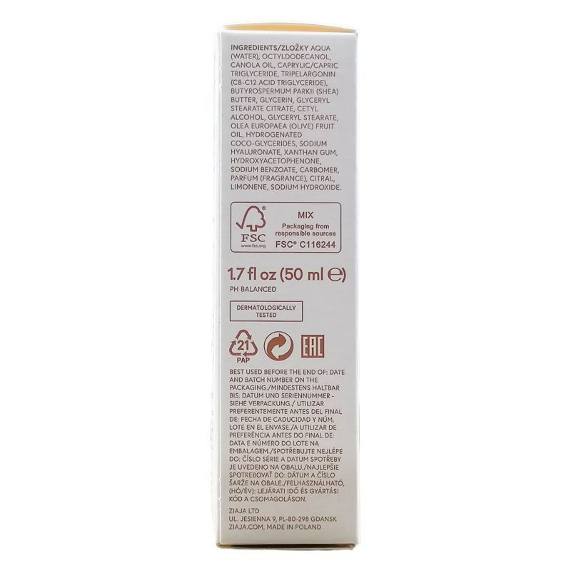 Összetevők: Aqua (Water), Octyldodecanol, Canola Oil, Caprylic/Capric Triglyceride, Tripelargonin (C8-C12 Acid Triglyceride), Butyrospermum Parkii (Shea) Butter, Glycerin, Glyceryl Stearate Citrate, Cetyl Alcohol, Glyceryl Stearate, Olea Europaea (Olive) Fruit Oil, Hydrogenated Coco-Glycerides, Sodium Hyaluronate, Xanthan Gum, Hydroxyacetophenone, Sodium Benzoate, Carbomer, Parfum (Fragrance), Citral, Limonene, Sodium Hydroxide.