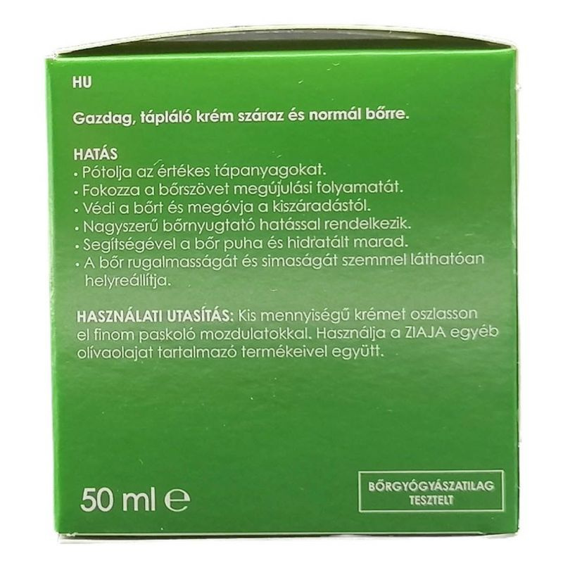 Használat: Kis mennyiségű krémet oszlasson el finom paskoló mozdulatokkal. Használja együtt a ZIAJA egyéb olívaolajat tartalmazó termékeivel.