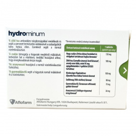 A Hydrominum étrend-kiegészítő tabletta természetes eredetű növényi kivonatokat tartalmaz. A csalán és a gyermekláncfű támogatja a húgyutak normál működését, a zöld tea antioxidáns tulajdonságokkal rendelkezik, míg az aranyvessző hozzájárul a normál vizeletkiválasztási funkcióhoz.