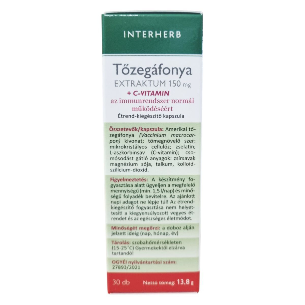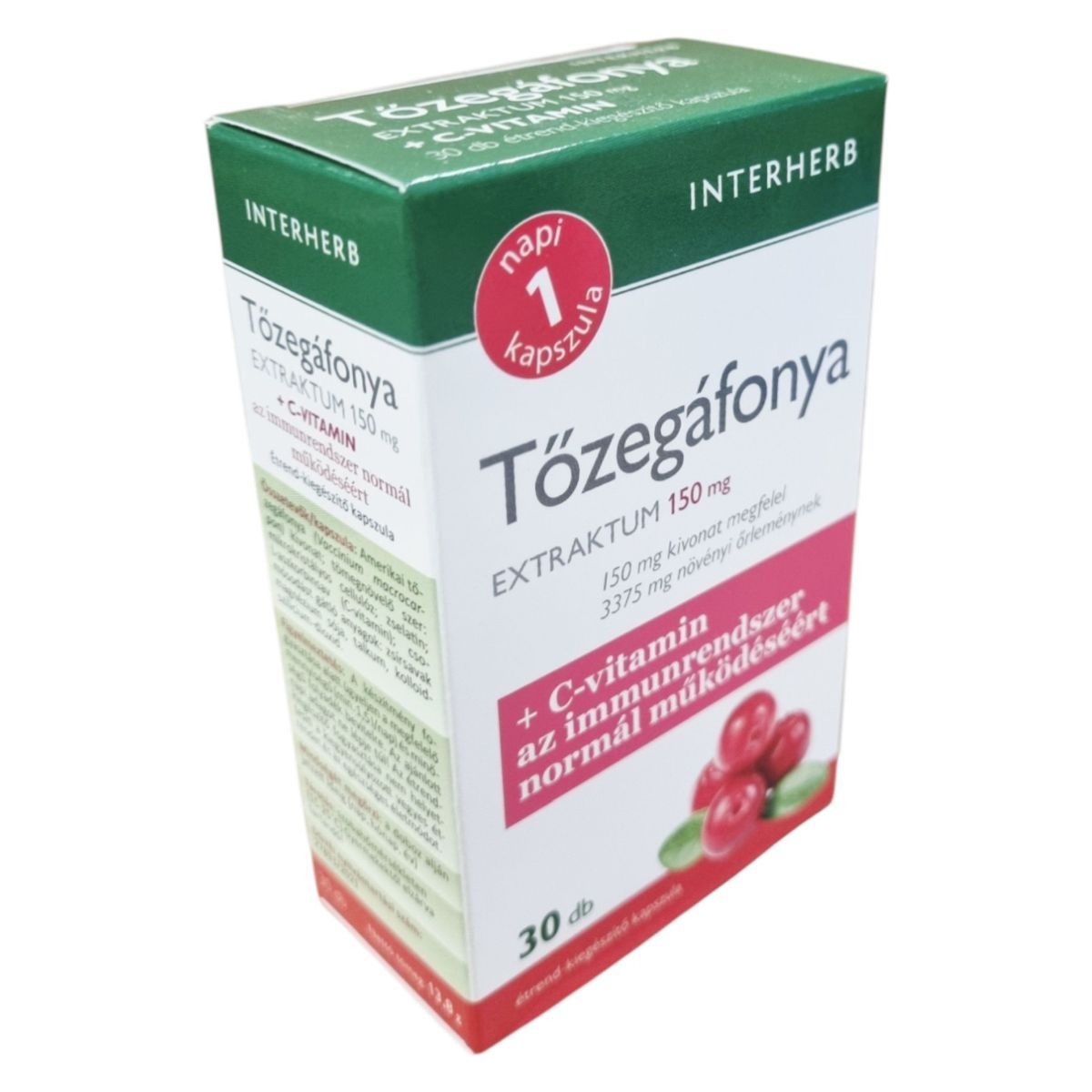 Az INTERHERB Tőzegáfonya EXTRAKTUM 150 mg kapszula amerikai tőzegáfonya kivonatot tartalmaz, amely gazdag antocián típusú flavonoid vegyületekben. A termék C-vitamint is tartalmaz, amely hozzájárulhat az immunrendszer normál működéséhez és a szervezet oxidatív stresszel szembeni védelméhez. A kapszula koncentrált proantocianidin (PAC) hatóanyag-tartalommal rendelkezik, amely 3375 mg tőzegáfonya gyümölcsporának felel meg. A termék megbízható minőségét a koncentrált extraktum, a bevizsgált alapanyag és a hazai fejlesztés garantálja.