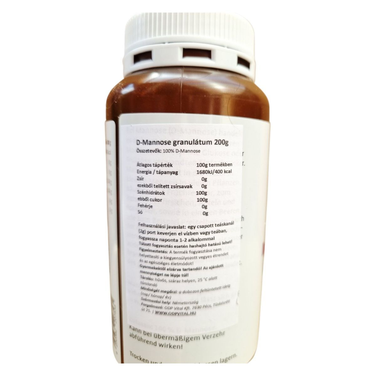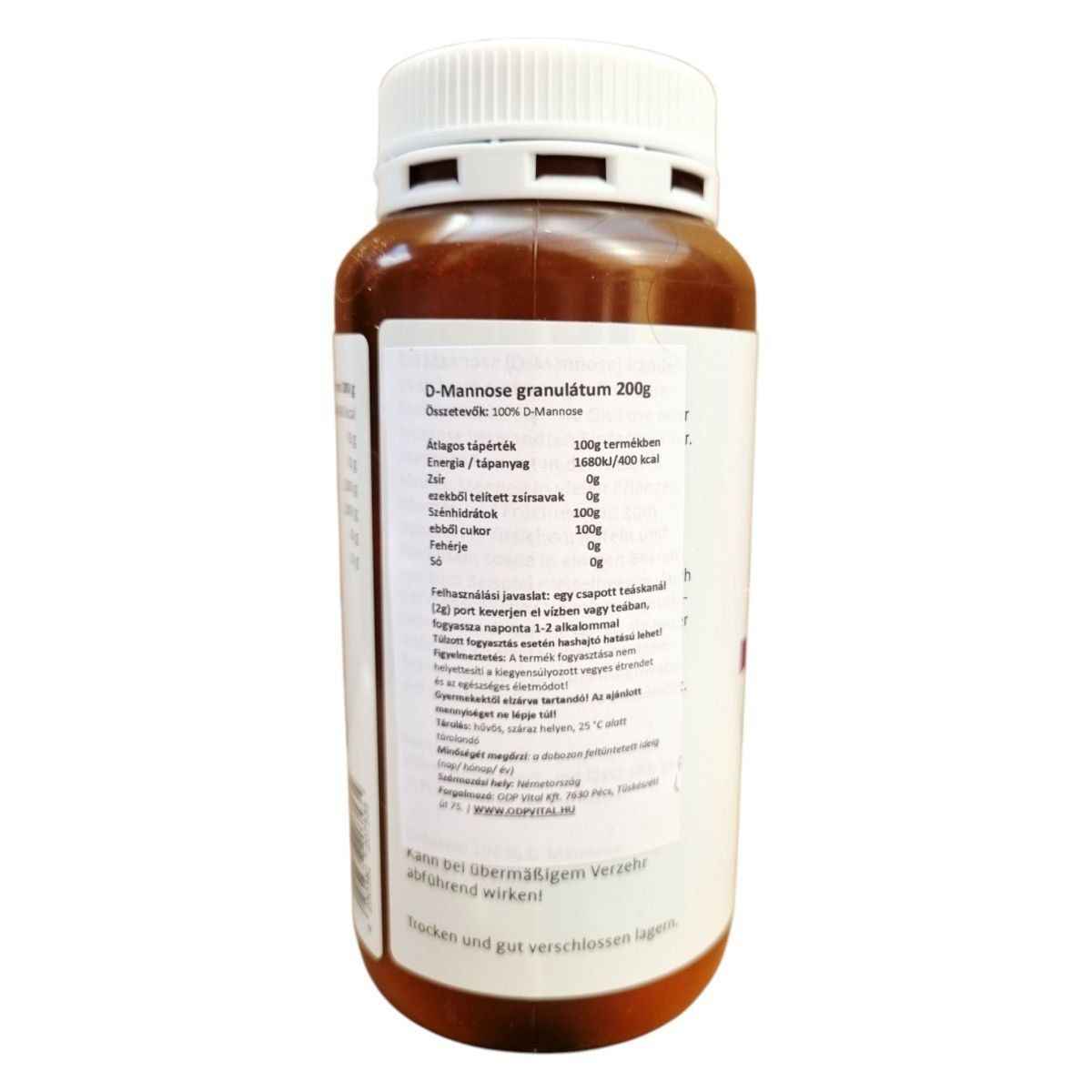 A D-mannóz egy természetes előfordulású, egyszerű cukor (monoszacharid), amely szerkezetileg a glükózhoz hasonló, de eltérő anyagcsereúton hasznosul. A szervezetben csak részben metabolizálódik, jelentős része változatlan formában kiválasztódik a vizelettel, ahol képes lehet kötődni bizonyos baktériumok – például az Escherichia coli – felszíni adhéziós struktúráihoz. Ez a mechanizmus hozzájárulhat ahhoz, hogy a baktériumok ne tapadjanak meg a húgyúti hámsejteken. Elsősorban a húgyúti komfort támogatására alkalmazzák. Megfelelő adagolás mellett általában jól tolerálható, azonban nagyobb mennyiségben emésztőrendszeri panaszokat okozhat. Egyéni egészségügyi állapot vagy gyógyszerszedés esetén javasolt szakemberrel konzultálni.