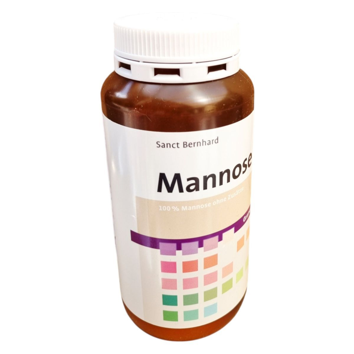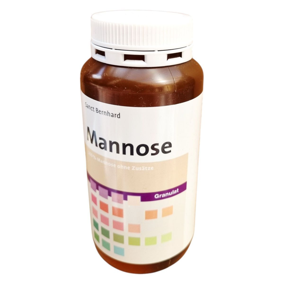 A Sanct Bernhard Mannose granulátum 100% tisztaságú D-Mannose-t tartalmaz, amely egy természetes cukor. A termék könnyen oldódik vízben vagy teában, és napi 1-2 alkalommal fogyasztható. A túlzott fogyasztás hashajtó hatású lehet, ezért fontos betartani az ajánlott mennyiséget. A termék nem helyettesíti a kiegyensúlyozott étrendet és az egészséges életmódot. Tárolása száraz helyen, 25 °C alatt javasolt. A termék Németországban készül, és a Kräuterhaus Sanct Bernhard KG gyártja.