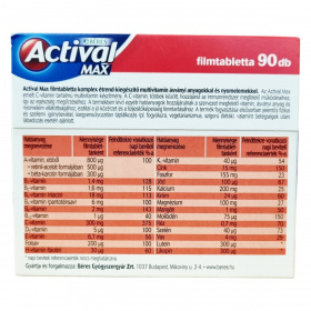 Az Actival Max filmtabletta komplex étrend-kiegészítő multivitamin ásványi anyagokkal és nyomelemekkel, emelt C-vitamin tartalommal.