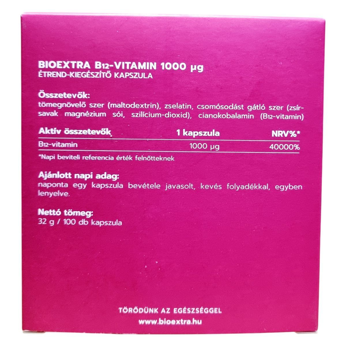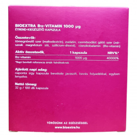 A BIOEXTRA B12-VITAMIN kapszula 1000 µg B12-vitamint tartalmaz, amely hozzájárulhat az ideg- és immunrendszer normál működéséhez, valamint a fáradtság csökkentéséhez.