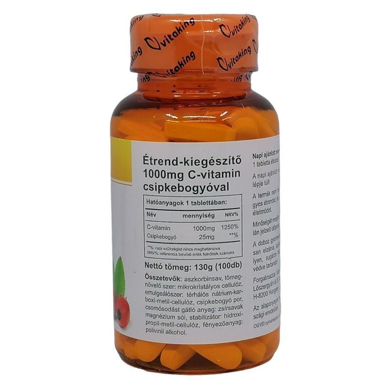 Különleges Vitaking C-vitamin készítmény, hisz az eddig megszokottakkal ellentétben 1500 mg C-vitamint tartalmaz. A C-vitamin vízben oldódó, nagyhatású antioxidáns. Egyike a leggyakrabban szedett vitaminoknak. A csipkebogyó a természetben előforduló legjobb C-vitamin forrás.