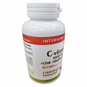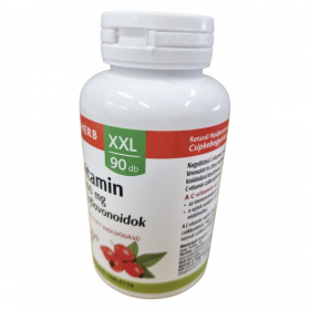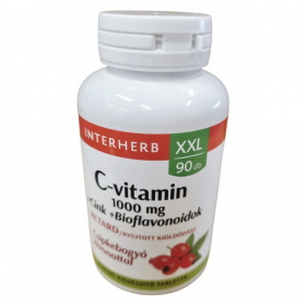 Az INTERHERB XXL étrend-kiegészítő tabletta nagydózisú C-vitamint, cinket, csipkebogyó kivonatot és citrus bioflavonoidokat tartalmaz, amelyek hozzájárulhatnak az immunrendszer normál működéséhez és a sejtek oxidatív stresszel szembeni védelméhez. A termék nyújtott kioldódású, így a szervezet megnövekedett C-vitamin szükségletének egyenletesebb biztosítására szolgálhat. A C-vitamin segíthet a fáradtság és a kifáradás csökkentésében, míg a cink szerepet játszhat a normál szellemi működés fenntartásában. A termék csomagolása 90 db tablettát tartalmaz, és a javasolt napi adag 1 tabletta, amelyet étkezést követően, bő vízzel kell bevenni.