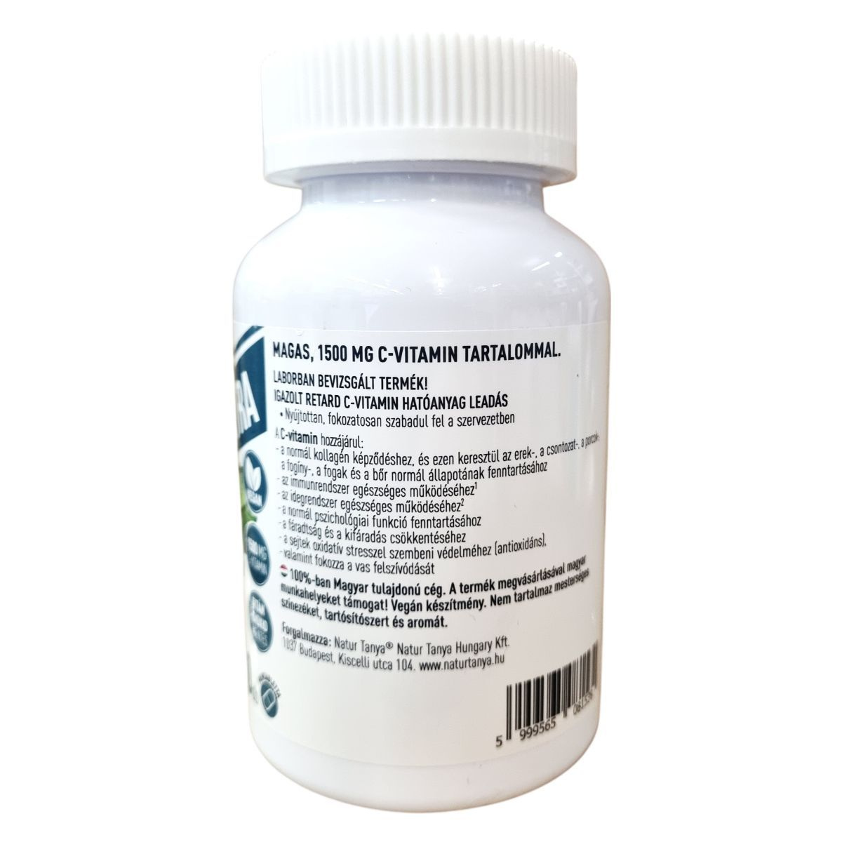 A termék 1500 mg C-vitamint tartalmaz, amely laboráltan igazolt retard (nyújtott hatóanyag leadású) formában szabadul fel a szervezetben, így biztosítva a fokozatos felszívódást. A C-vitamin hozzájárulhat a normál kollagén képződéshez, ami támogatja az erek, a csontozat, a porcok, a fogíny, a fogak és a bőr egészséges állapotának fenntartását. Emellett hozzájárulhat az immunrendszer és az idegrendszer egészséges működéséhez, a normál pszichológiai funkció fenntartásához, a fáradtság és kifáradás csökkentéséhez, valamint a sejtek oxidatív stresszel szembeni védelméhez antioxidánsként. Továbbá elősegítheti a vas felszívódását. A készítmény nem tartalmaz mesterséges színezéket, tartósítószert és aromát. Magyar tulajdonú cég terméke, amely magyar munkahelyeket támogat.