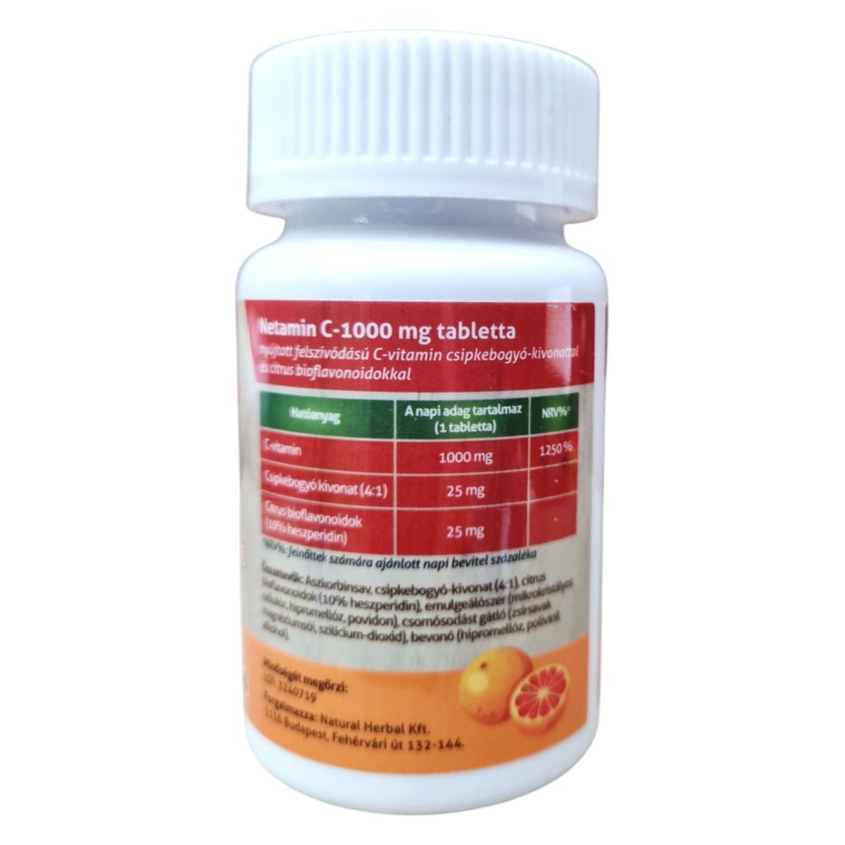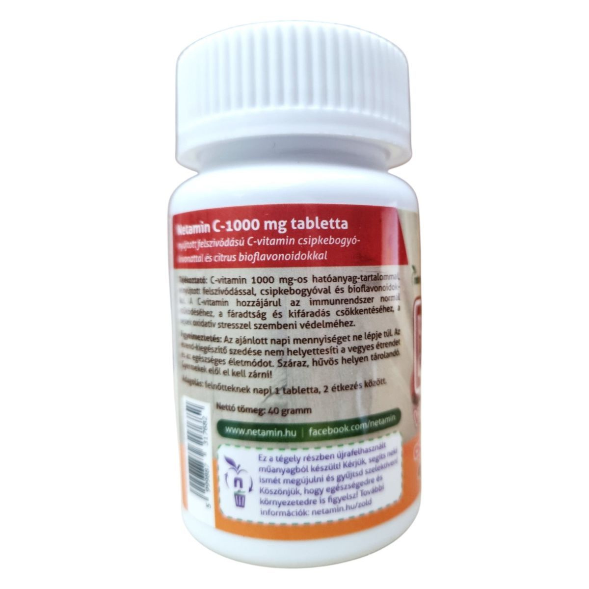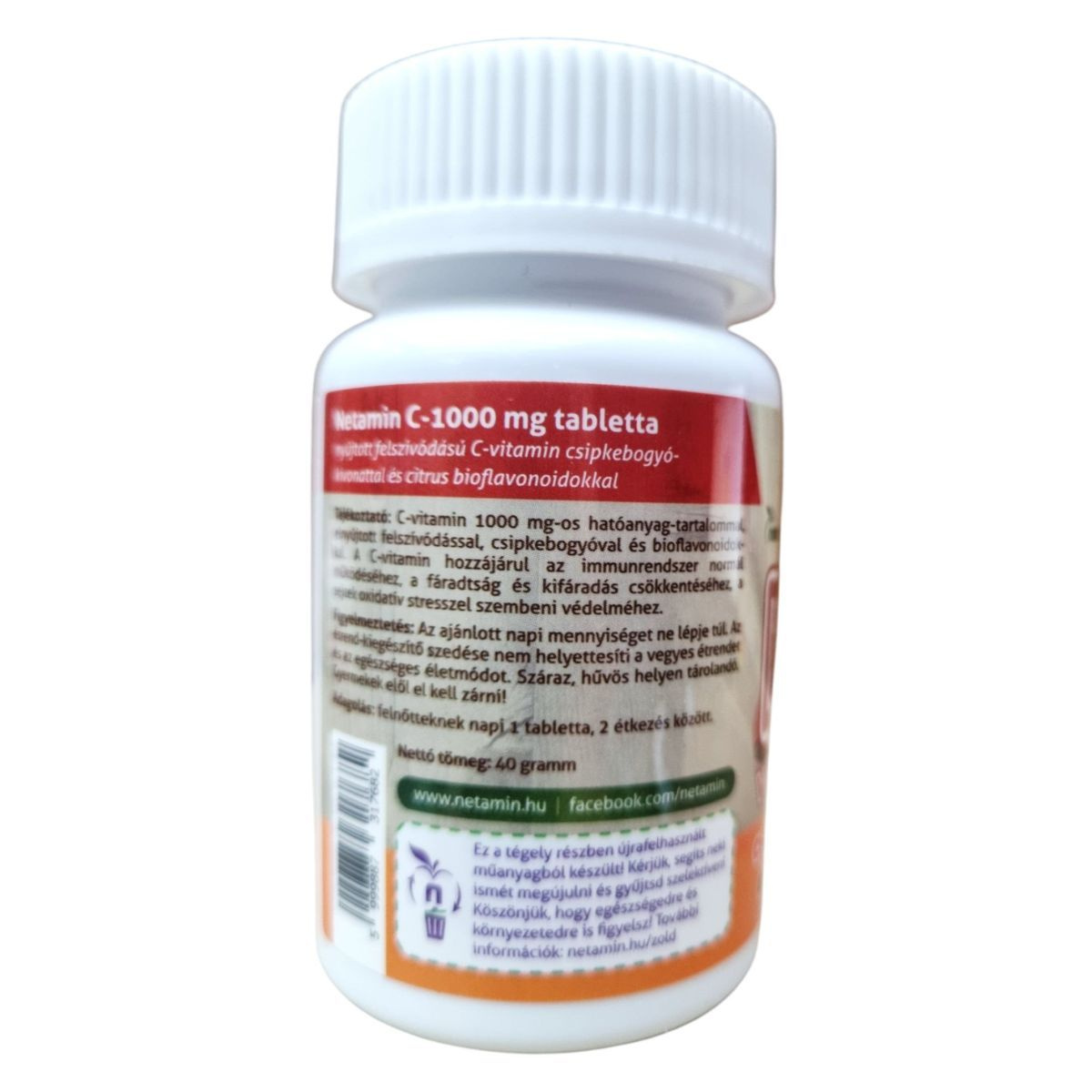 A Netamin C-1000 mg tabletta nyújtott felszívódású C-vitamin készítmény, amely csipkebogyó-kivonatot és citrus bioflavonoidokat tartalmaz. A termék célja, hogy támogassa az immunrendszer normál működését, csökkentse a fáradtságot és a kifáradást, valamint védelmet nyújthat a sejtek oxidatív stresszel szemben. A termék részben újra felhasznált műanyagból készült csomagolásban érkezik, ezzel is támogatva a környezetvédelmet.