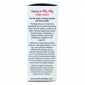 A nagy mennyiségű D3-vitamin az immunrendszer megfelelő működéséhez, valamint a fogazat, a csontrendszer egészségéhez és a normál izomfunkciók fenntartásához járul hozzá. Támogatja a táplálékkal bevitt kalcium és a foszfor hasznosulását a szervezetben. A K2-vitamin termelése a vastagbélben lévő egyes baktériumok által történik; időskorban, illetve antibiotikus kezelés hatására a folyamat csökkenhet. A természetes K2-vitamin részt vesz az egészséges csontrendszer fenntartásában, valamint a normál véralvadási folyamatban. Pótolja a K-vitamint a szervezet számára kedvező természetes forrásból, és támogassa az egészséges életmódot. Az A-vitamin segíti a látás és az immunrendszer normál működését, hozzájárul a nyálkahártya és a bőr megfelelő állapotának fenntartásához.