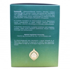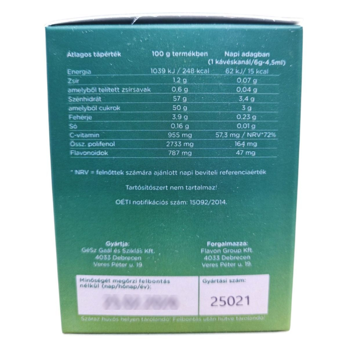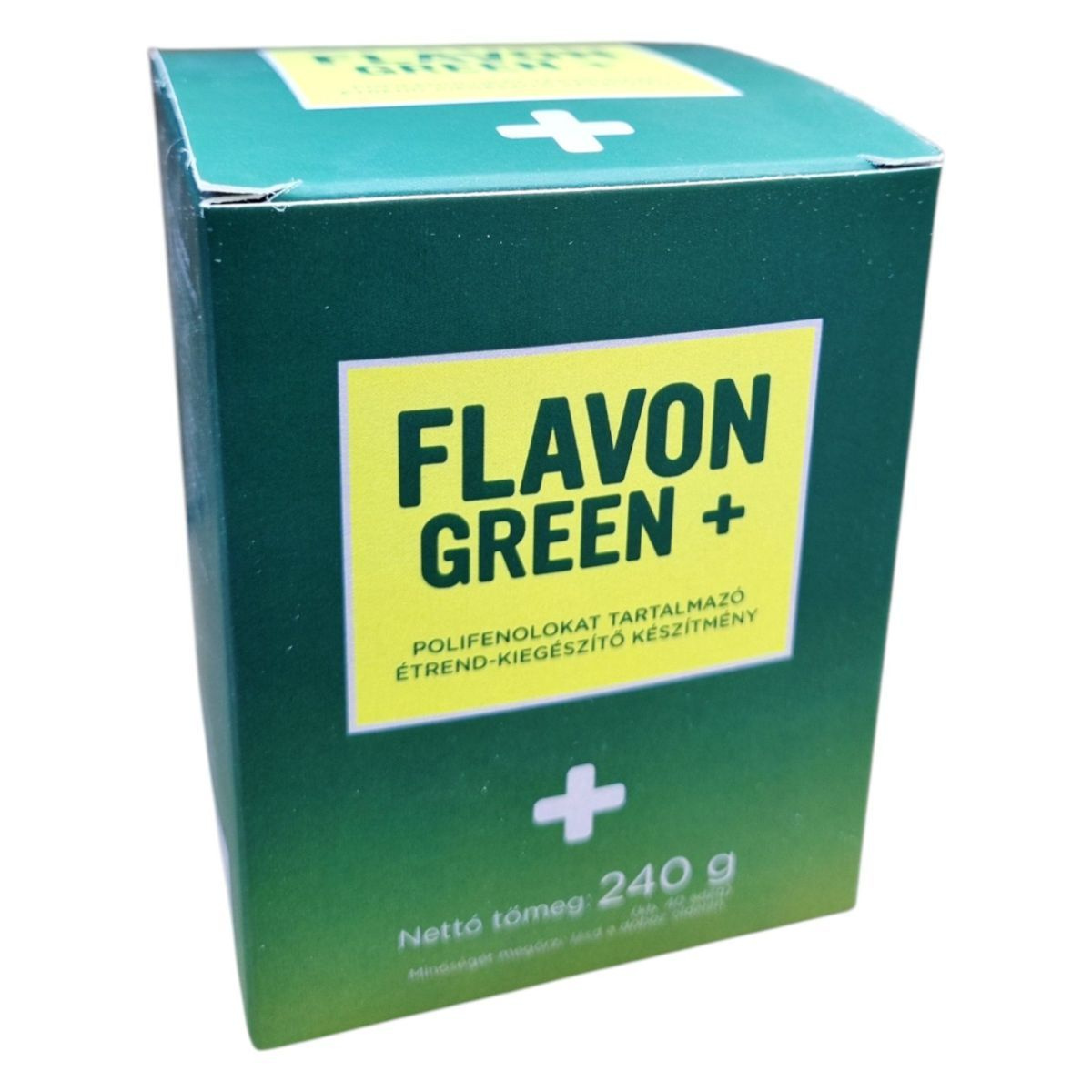 A Flavon Green+ egy polifenolokat tartalmazó étrend-kiegészítő, amely különféle növényi összetevőket, például narancs, articsóka, brokkoli, sárgarépa, spenót és spárga lékoncentrátumokat tartalmaz. A termék C-vitamint is tartalmaz, amely hozzájárulhat az immunrendszer és az idegrendszer normál működéséhez, valamint a sejtek oxidatív stresszel szembeni védelméhez. A készítmény természetes anyagokat tartalmaz, ezért állagában, színében, ízében enyhe eltérések adódhatnak, melyek a termék minőségét nem befolyásolják. A termék tartósítószert nem tartalmaz, és ajánlott napi fogyasztási mennyisége egy kávéskanál étkezés után. Fontos, hogy az étrend-kiegészítő nem helyettesíti a vegyes étrendet és az egészséges életmódot.