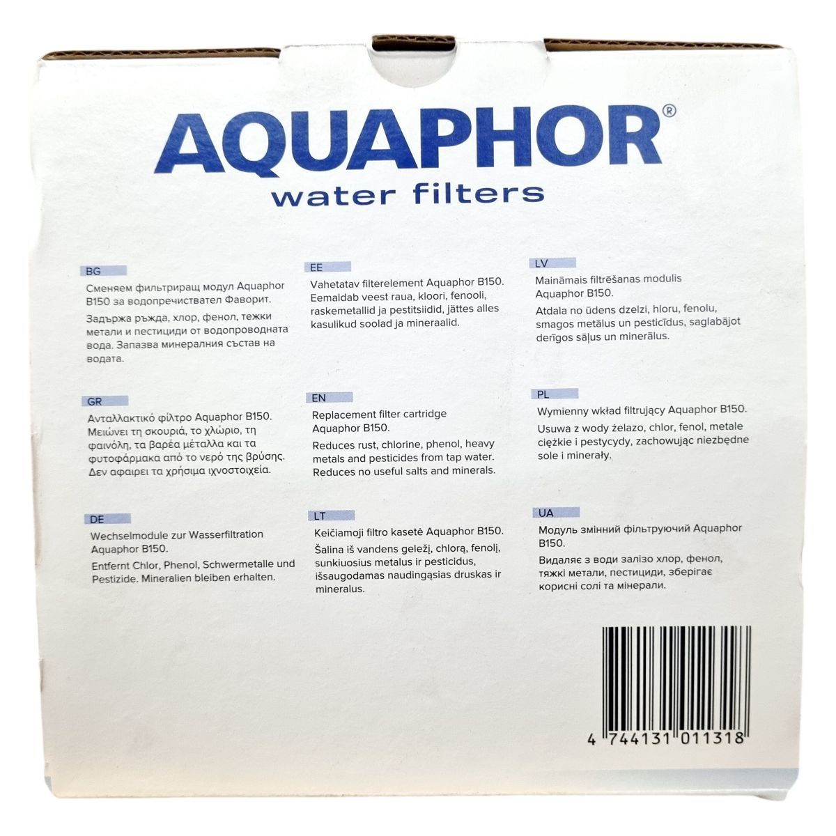 AQUAPHOR B150 vízszűrő betét hatékonyan csökkenti a csapvízben található rozsdát, klórt, fenolt, nehézfémeket és peszticideket, miközben megőrzi a fontos ásványi anyagokat.