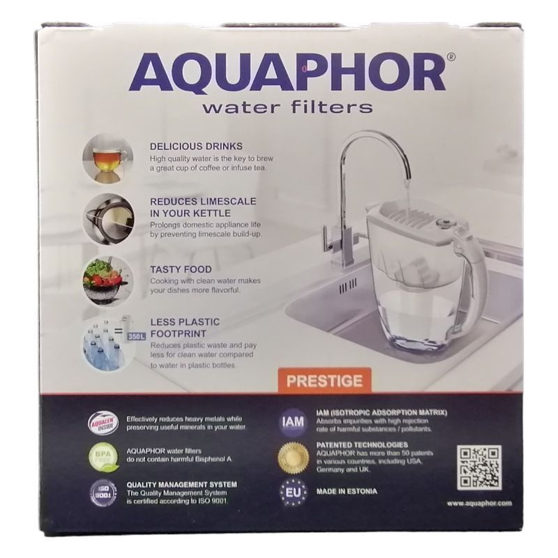 Az Aquaphor Prestige kancsóban használt B100-5 Aquaphor szűrőbetét 300 liter csapvíz megtisztítására alkalmas. Kiemelkedő kapacitásának köszönhetően elég kb. 3-4 havonta cserélni, amennyiben a használata nem haladja meg az átlag 100 litert havonta.