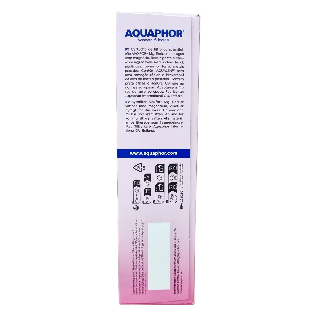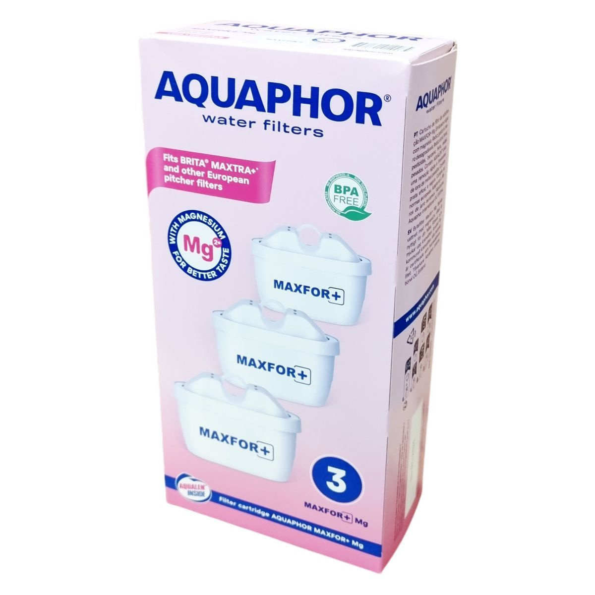 A MAXFOR+ Mg csereszűrő betét hatékonyan védi a vízszűrő kancsókat a vízkő lerakódásától. Képes eltávolítani a vasat, nehézfémeket (például ólom, kadmium), klórt, fenolt, peszticideket és egyéb káros vegyületeket, miközben megszünteti a víz rossz ízét és szagát. Az AQUALEN™ technológia révén gyors és visszafordíthatatlan ionmegkötést biztosít, ami a nehézfémek eltávolításának hatékonyságát növeli. Az ezüstionokat tartalmazó szűrő felület antibakteriális hatású, így megakadályozza a káros baktériumok növekedését. A szűrő betétek megfelelnek az európai szabványoknak, és kompatibilisek számos európai gyártású vízszűrő kancsóval. Egy betét átlagosan 200 liter vezetékes víz megtisztítására alkalmas. A termék FSC tanúsítvánnyal rendelkező újrahasznosított anyagokból készült csomagolásban érkezik, elősegítve ezzel a környezetvédelemhez való hozzájárulást és a műanyag hulladék csökkentését.